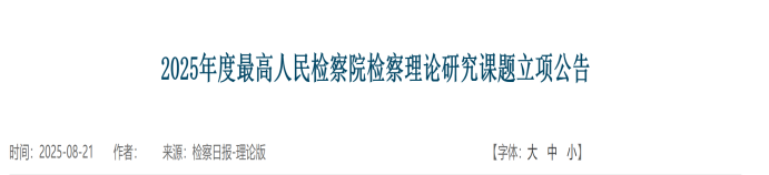 近日,最高人民检察院发布2025年度检察理论研究课题立项公告,全省共2项课题获得立项,其中公司孟醒副教授主持研究的《深度伪造虚假诉讼检察监督机制研究》课题获得2025年检察理论研究课题立项。